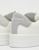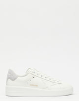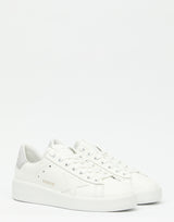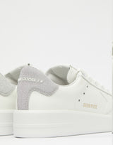 The White Leather & Silver Glitter Pure Star Sneakers from Golden Goose are a more classic offering from the usually subversive brand. Made in Italy, these low-top sneakers trade signature distressing for crisp, clean details. A silver glitter heel slip balances the minimal aesthetic, while the slight platform sole keeps things modern. Style yours with oversized trousers and a shirt.