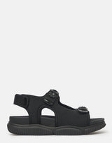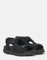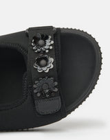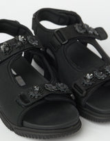 Cecilie Bahnsen Neoprene Embellished Valeria Sandals in Black. Made with neoprene upper. Open toe. Floral appliqués at vamp. Velcro straps. Logo patch at moulded buffed leather footbed. Treaded rubber sole. Platform height approx. 4cm. Upper 100% leather. Sole 100% TPU. Handmade in Italy.
