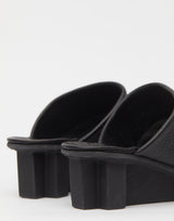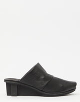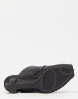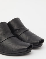 The Black Leather Enjoy Alb Sandals by Trippen are a seamless slip-on sandal. Made in Germany from buttery soft leather with an elegant pleated groove at the toe and another pleat designed to hold the foot in place. They feature the label’s X+OS rubber sole, which are soft and flexible.