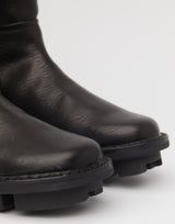 Trippen Leather Mid Height Sanft Boots in Black. Natural vegetable tanned calf leather and treated with a wax finish. Vegetable tanned sheepskin lining. Leather tumbled for extra softness. Full length side zip. 100% Leather. Made in Germany.