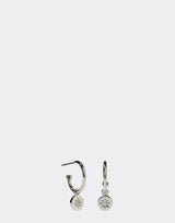 Meadowlark Sterling Silver Lulu Signature Hoop Earrings. Tiny delicate round pendants are suspended from the labels signature hoop earrings. Each one featuring a single gemstone set into an eight-point star setting. High polish finish. Sold as a pair. Pendants approx. 0.6cm diameter. Sterling silver. Handmade in New Zealand.