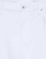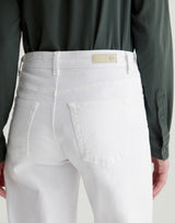Adriano Goldschmied Saige Wide Leg Crop Jeans in Gallery White. Mid weight cloud soft stretch denim in fresh white. Twill construction, designed to get softer with every wear. Waistband with belt loops. Classic five pocket style. Zip fly and button closure. Raw hems. Mid rise waist. Wide leg. Cropped length. 93% cotton, 5% polyester 2% elastane. Made in Mexico.
