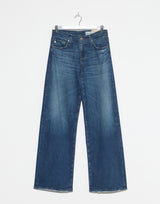 Adriano Goldschmied Adria Low-Rise Jeans in 10 Years Exposure. Low-rise waist that hangs on the hips for a relaxed, slouchy look. Wide leg, that fits loose and easy through the legs, designed to puddle at the hems. Dark indigo wash with fading, worn edges and a hint of distressing at the pockets. Made from 10 oz. Japanese stretch denim with lyocell added for s soft feel. Marigold stitching accents. Five pocket design. 72% cotton 26% lyocell 2% elastane. Made in Mexico.
