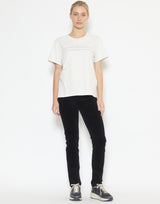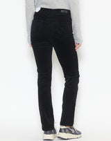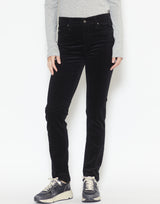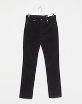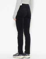 Adriano Goldschmied Corduroy Mari Jeans in Super Black. Mid-rise slim silhouette. Stretch mini Corduroy. Soft, plush texture in a black shade. Flattering mid-rise waist. Straight leg. 98% cotton 2% elastane. Made in Mexico.