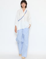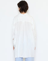 Daniela Gregis Cotton More Lavata Top in White. Meticulously handmade from lightweight cotton, which has been pre washed for added softness and texture. Mid length sleeves with single button cuffs. Dropped shoulders. Point collar. Partial front button placket. Pleat at centre back. Side pockets. Extra length at back hemline. Side slit. Relaxed fit. 100% cotton. Handmade in Italy.