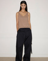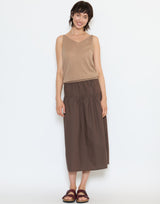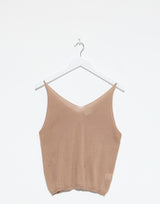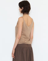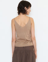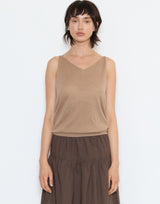 Deiji Studios Cotton Rolled Knit Top in Light Brown. Made from lightweight 100% GOTS certified organic cotton. Tank top style. Rolled V neckline. Relaxed fit. 100% cotton.