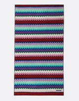 Missoni Home Chantel 100 Cotton Beach Towel in multicoloured zig zag pattern. Ultra-soft yarn dyed cotton very towelling for extra absorbency. 100% Cotton. W 100cm x L 180cm. Made in Portugal.