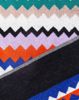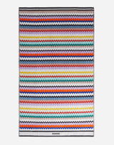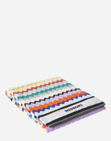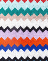 Missoni Home Riverbero 100 Cotton Beach Towel in an iconic zig zag pattern. Crafted from soft and absorbent cotton terry velour. Signature Missoni logo. Jacquard edges. 100% Cotton. 100cm x 180cm. Made in Portugal.