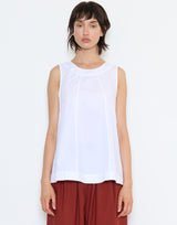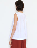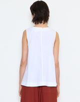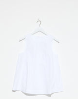 Toast Cotton Poplin Easy Top in White. Made from lightweight cotton poplin. Panel design. Central seam at back. Single corozo button closure at centre back. Garment dyed. Sleeveless. Round neckline. Regular fit. 100% cotton. Made in Portugal.