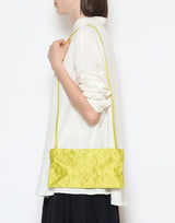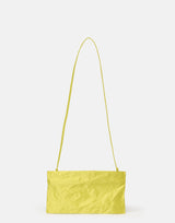 Zilla Nappa Satin & Metallic Foil Greta Bag in Lemon Yellow. Made from a unique composition of satin and metallic foil. Zip top closure. Detachable shoulder, cross body strap. Silver toned hardware. Can be used as a clutch, over the shoulder or as a cross-body bag. Lined. H 16cm x W 30cm x D 8cm. Outer 100% polyester satin. Lining 100% metallic foil. Handmade in Italy.