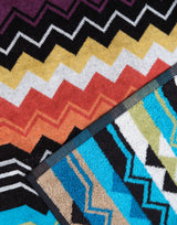 Details: Velour on one side – terry towelling on the reverse – perfect size for home, gym or travel – bold zig zag patterns in vibrant multicolours
