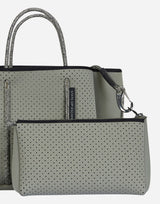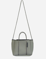 Aesthetically gorgeous, quick and agile. The Petite Escape tote is the original Escape neoprene tote in handheld miniature with lots of character, wit and charm. With a removable pouch and chic cross body shoulder strap for hands free fun. 100% neoprene. W 25cm x H 19cm x D 14cm. Handmade in Australia.