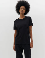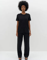 Bassike Cotton Regular Classic T-Shirt in Black. Short sleeves. Australian superfine 90 gsm organic cotton jersey. Vintage neckline. Signature contrast topstitch detail on the back. 100% cotton. Made in Australia.