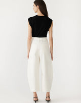 White Cotton Twill Barrel Leg Pants
