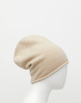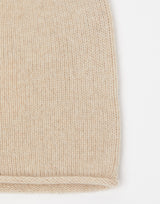 Cashmerism Cashmere Beanie in Beige Raw. Sustainably sourced raw cashmere fibres remain undyed, resulting in a stunning natural hue and ultra soft luxurious feel. Midweight knitted cashmere. Round classic beanie. Rolled edge. 100% Cashmere.