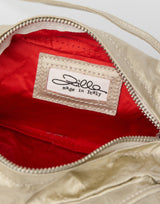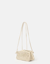 The Sand Satin Olivia Mini Bag by Zilla is a contemporary combustion of shape and texture. It features a top zip closure, detachable shoulder strap which is secured with knot ties. Perfect for every day, hold it over the shoulder or tuck in the crook of the arm. L 22cm x H 10cm x W 9cm. Handmade in Italy.