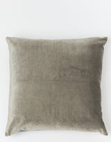 Hoponit Oceanic Two Cushion 60cm x 60cm. Limited edition hand printed linen cushion with a light grey velvet back. Gold toned zip opening. Cushion insert filled with plush feather filling encased in cotton. Front 100% linen reverse side 100% cotton velvet. Handmade in Australia.