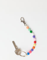 Ina Seifart Perlen Short Key Chain in Multimix One. Handmade in Germany from certified sustainable (FSC) wooden beads which have been uniquely coloured with non-toxic varnish. Elastic band and threaded beads. Metal ring and clasp. Bead Ø 1cm Chain L 22cm. Handmade in Germany.