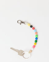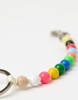 Ina Seifart Perlen Short Key Chain in Multimix Two. Handmade in Germany from certified sustainable (FSC) wooden beads which have been uniquely coloured with non-toxic varnish. Elastic band and threaded beads. Metal ring and clasp. Bead Ø 1cm Chain L 22cm. Handmade in Germany.