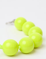 Ina Seifart Extra Large Perlen Key Chain in Neon Yellow. Handmade in Germany from certified sustainable (FSC) wooden beads which have been uniquely coloured with non-toxic varnish. Elastic band and threaded chunky beads. Metal ring and clasp. Bead Ø 3.5cm, Chain L 30cm. Handmade in Germany.
