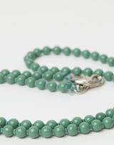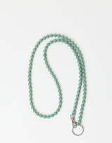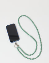 Ina Seifart Phone Necklace in Salvia. Handmade in Germany from certified sustainable (FSC) wooden beads which have been uniquely coloured with non-toxic varnish. Elastic band and threaded beads. Metal ring and clasp. Bead Ø 1cm Chain L 120cm. Handmade in Germany.