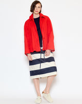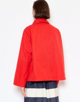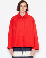 Casey Casey Cotton Drays Jacket in Flame. Midweight cotton with a subtle texture and washed finish. Front welt pockets. Button front placket with Corozo buttons. Fully lined in ecru cotton. Regular fit. 100% cotton. Made in Bulgaria.