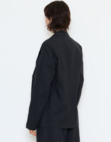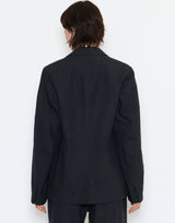 Sofie D’Hoore Cotton Caroline Blazer in Midnight. Lightweight crinkled cotton with a taffeta feel. Peaked lapel. Button closure. Welt pocket with flap pocket. Padded shoulders. Vented cuffs. Central vent at back hem. Unlined. Relaxed fit. 100% cotton. Made in Slovenia.