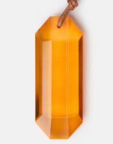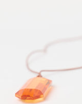 Matt Swope orange glass pendant necklace with leather rope tie. Self-tie closure. Handcrafted from one-of-a-kind stones, size may vary. Leather rope length approx. 55cm. Pendant approx. H 7.5cm x W 3cm. Handmade in New York.