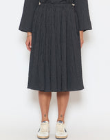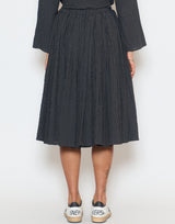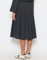 Apuntob Cotton Elastane Blend Skirt in Asphalt Grey Black. Lightweight cotton elastane blend, with gingham check to create a playful texture. Elastic waistband. Two Drawstrings. Gathered mid-length skirt. Unlined. Regular fit. 99% cotton, 1% elastane. Made in Italy.
