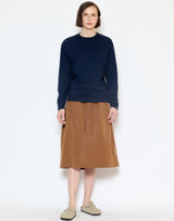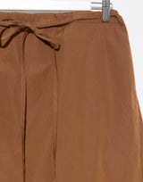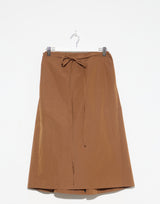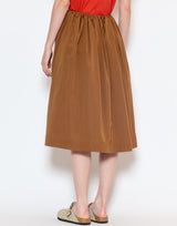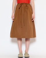 Casey Casey Cotton Taffeta Square Skirt in Ginger. Midweight washed taffeta. Subtle sheen, cotton softness with crisp texture. Drawstring waist for comfortable, fully adjustable fit. In seam pockets. Mid length, regular fit. Unlined. 89% cotton 11% polyamide. Made in Romania.