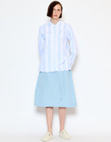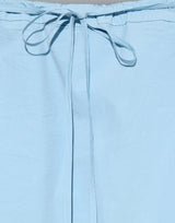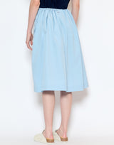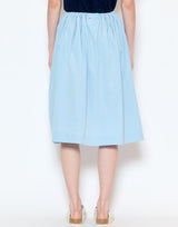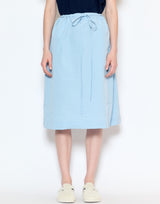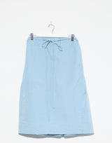 Casey Casey Cotton Taffeta Square Skirt in Sky Blue. Midweight washed taffeta. Subtle sheen, cotton softness with crisp texture. Drawstring waist for comfortable, fully adjustable fit. In seam pockets. Mid length, regular fit. Unlined. 89% cotton 11% polyamide. Made in Romania.