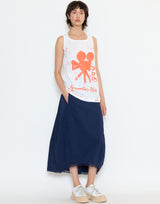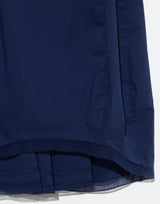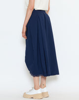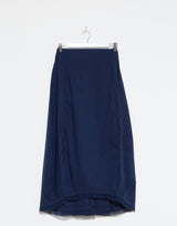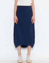 Rundholz Black Label Cotton Blend Stretch Midi Skirt in Navy. Made from a cotton, polyamide and elastane blend. Elasticated waistband. Front seam pockets. Slight balloon shape. Tulle details at hem. Regular fit. 46% cotton 36% polyamide 13% linen 5% elastane.