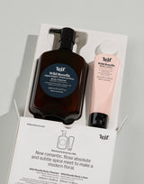 Leif Wild Rosella Body Duo Small. New romantic. Rose absolute and subtle spice meet to make a modern floral. This gift set ties together Wild Rosella Body Cleanser 500mL & Lotion 100mL, rich in antioxidants to cleanse and nourish the skin. Presented in a beautifully minimalist, recyclable box featuring FSC-certified materials