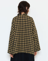 Daniela Gregis Wool Reversible Giacca Gladiolo Jacket in Check. Made from luxuriously soft wool in a black and natural check. Front patch pockets. Notched lapel. Long sleeves. Dropped shoulders. Side slits. Relaxed fit. 100% wool. Handmade in Italy.
