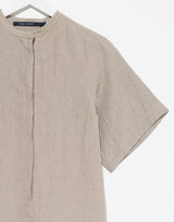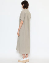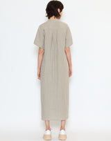 Sofie D’Hoore Linen Dublin Shirt Dress in Natural. Lightweight breathable linen. Round neckline. Concealed button partial front placket. Short sleeves. Side seam pockets. Pleat detailing. Long length. Relaxed fit. 100% linen. Made in Bulgaria.