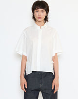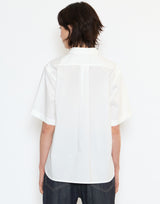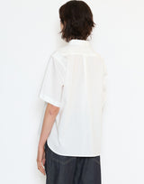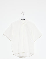 Sofie D’Hoore Cotton Belem Shirt in Off White. Lightweight crisp cotton. Short sleeves. Pointed collar. Concealed button front placket. Side slits. Single back pleat. Slightly curved hem. Relaxed fit. 100% cotton. Made in Portugal.