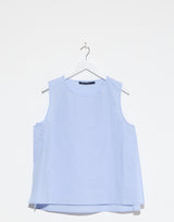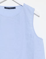 Sofie D’Hoore Cotton Brody Top in Sky Blue. Lightweight textured ‘glazed’ cotton. Round neckline. Sleeveless. Open side seams. Subtle A-line silhouette. Boxy fit. 100% cotton. Made in Bulgaria.