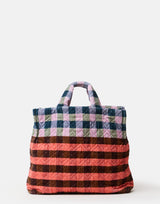 Épice Paris Large Cotton Velvet Tote in Red & Pink. Made from soft cotton velvet. Quilted finish. Printed lining. Twin top handles. Adjustable and removable shoulder strap. Inner zip pocket. Snap button closure. Lined. H 34cm x W 37cm x D 12cm. Made in India.