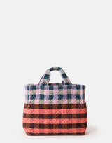 Épice Paris Medium Cotton Velvet Tote in Red & Pink. Made from soft cotton velvet. Quilted finish. Printed lining. Twin top handles. Adjustable and removable shoulder strap. Inner zip pocket. Snap button closure. Lined. H 28cm x W 30cm x D 12cm. Made in India.