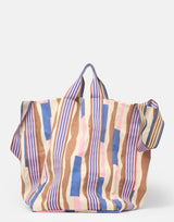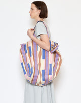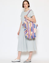 Épice Paris Cotton Canvas Tote Bag in Lavender. Made from cotton canvas featuring a unique paper-cutting inspired design. Short top handles and longer shoulder straps. Cotton lined. Snap button closure. H 40cm x W 38cm x D 20cm. Made in India.