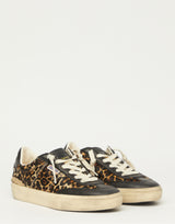 Golden Goose Soul Star Sneakers in Leopard print. Crafted from leopard printed pony hair and a black leather upper, which has been distressed for a lived-in feel, the label calls them ‘perfect imperfections’. Tonal black leather heel tab and off-white laces complete the style. Handmade in Italy.