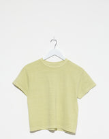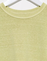 Sunray Spirit Hi’Aka SS T-Shirt in Pigment Dye Winter Pear. Made from premium pigment dyed cotton, produced on vintage circular knitting machines to create a t-shirt with no side seam. The use of heavyweight 260gm Ochiwata cotton jersey with a low 19 yarn count ensures a soft feel with unique unevenness. The use of soft jersey ensures they retain shape and follow the brand approach to sustainability. Cap sleeves. Ribbed crew neckline. Boxy waistline fit. 100% cotton. Made in Japan.