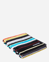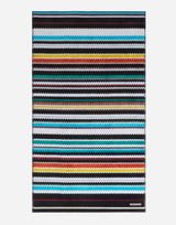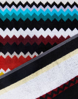Missoni Home Curt 100 Cotton Beach Towel. Iconic zig zag pattern. Crafted from soft and absorbent cotton terry velour. Signature Missoni logo. Jacquard edges. 100% Cotton. 100cm x 180cm. Made in Portugal.