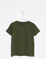 Sofie D’Hoore Cotton Turin T-Shirt in Seaweed Green. Lightweight ultra soft cotton. Crew neckline. Short sleeves. Set in shoulders. Straight hem. Regular fit. 100% cotton. Made in Portugal.