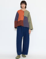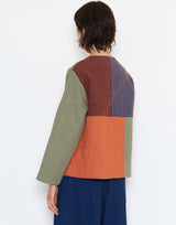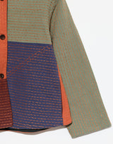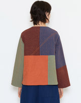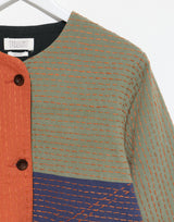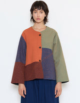 Toast Quilted Patchwork Cotton Jacket. Lightly quilted and hand-embroidered with kantha stitching by artisans in India. Colourful patchwork panels inspired by the art of paper collaging. Long sleeves. Round neckline. Button down front. Full cotton lining and slightly cropped sleeves. Relaxed fit. 100% cotton.