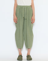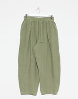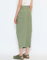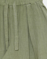 Toast Linen Minako Trousers in Sage. Made from garment-dyed linen. Elasticated waistband with drawstring for comfortable fit. Gently tapered cropped legs. Angles side pockets. Two back patch pockets. Relaxed fit. 100% linen. Made in India.